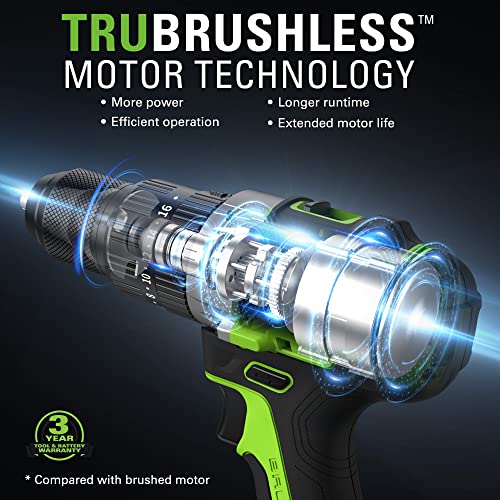 Greenworks 24V Brushless Cordless Hammer Drill Kit, 530 in./lbs Torque, 20+1 Position Clutch, 1/2 ” Keyless Chuck, Variable Speed, (1) 4Ah USB (Power Bank) Batteries and Charger, LED Light