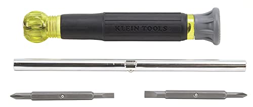 Details: Klein Tools electronics screwdrivers are designed for precision work, and feature a swivel cap for optimum control. Made of the highest quality tempered steel, carefully heat-treated for maximum strength, and precision milled to fit screw openings securely. Rotating caps and Klein’s exclusive Cushion-Grip handles offer outstanding comfort and control. Corrosion-resistant chrome plated barrel that includes two double-ended bits that exceed ANSI standards. 4-in-1 electronics screwdriver has heat-treated precision ground tip. Screwdriver has cushion grip handle for torque and comfort. Multi-bit screwdriver has rotating cap for precise control. Has interchangeable shaft for quick bit switch out. Lightweight, only 1.1-Ounces (31 g). For more than 160 years, Klein Tools has manufactured premium-quality, professional-grade hand tools that deliver the performance, durability and precision needed to get the job done right. Our family of engineers, workers and craftsman continue to put six generations of expertise into every tool we create by using only the highest quality materials, superior workmanship, and keeping manufacturing as close to home as we can. Klein isn’t just the name of our company, it’s also our family name. And since we’re an American company that’s family-owned and family-run, you know you can count on us to be here tomorrow. Klein Tools doesn’t just make great products, we make great products that stand up to the demands of the professionals who use them every day … Since 1857.