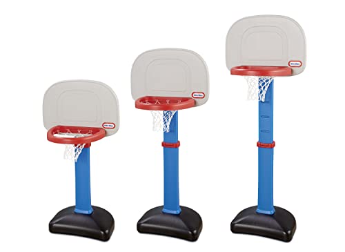 Details: The Little Tikes easy score basketball set, designed for children 18 months to 5 years old, introduces kids of all abilities to the game of basketball and competitive play. The height can be adjusted to six settings between 2.5 and 4 feet to accommodate even the littlest hoop Star. The oversize rim and kid-size basketball ensure easy scoring and help kids develop hand-eye coordination while providing the right challenge level. Before play, add sand to the base for stability. This product requires assembly.
