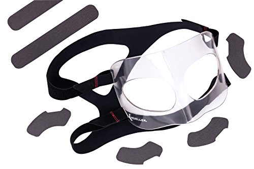 Details: The Mueller Face Guard helps protect your face from maxillary, nasal, zygomatic and orbital injuries. Wear this Face Guard while playing basketball, baseball, soccer, and any other sport where face injuries may occur. Made from medical grade polycarbonate, the Mueller Face Guard provides improved clarity while being crack/shatterproof. The proprietary occipital harness comfortably secures the face guard and prevents shifting, while the customizable XPE foam pads can be placed exactly where needed. One Size Fits Most.