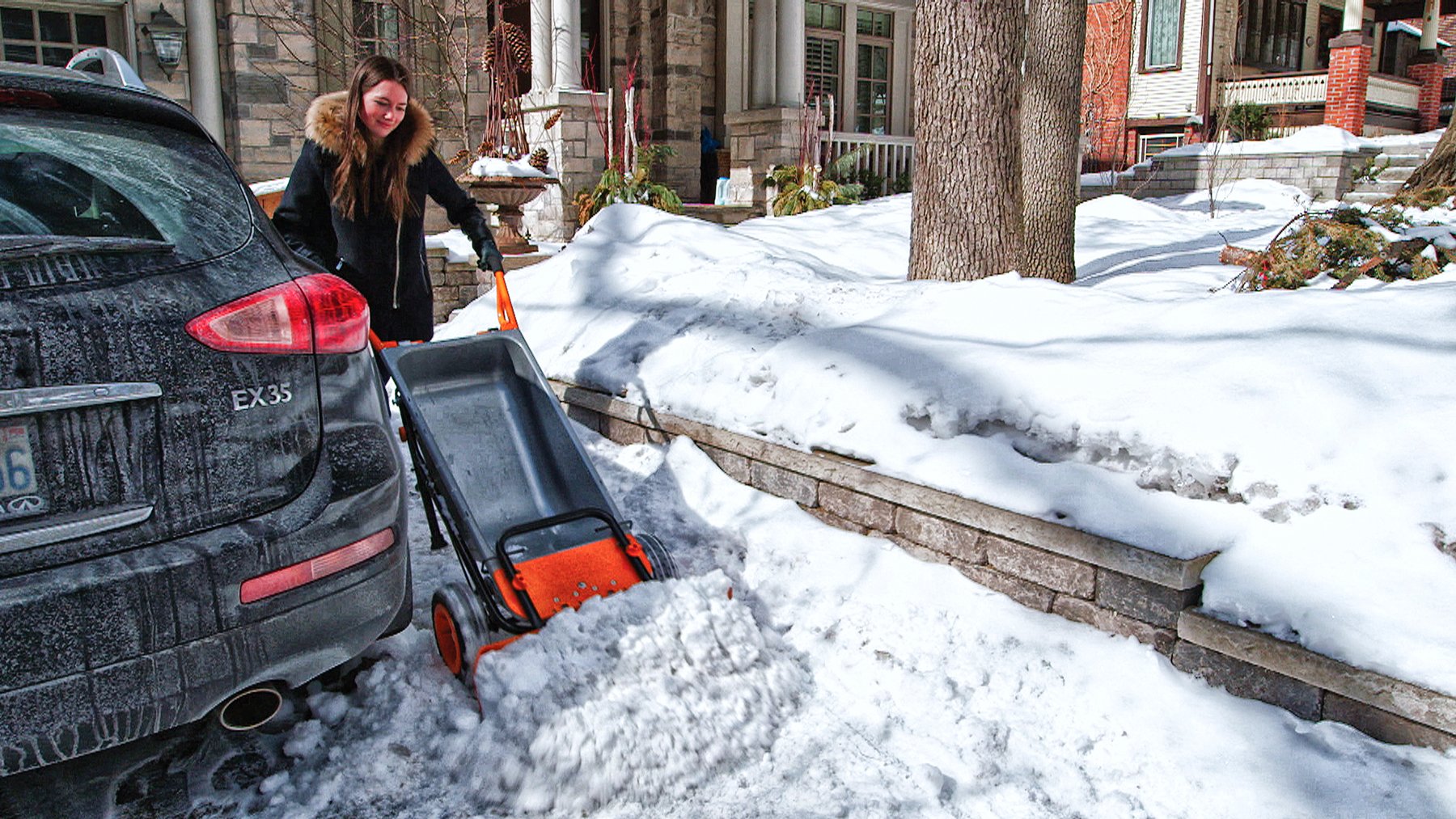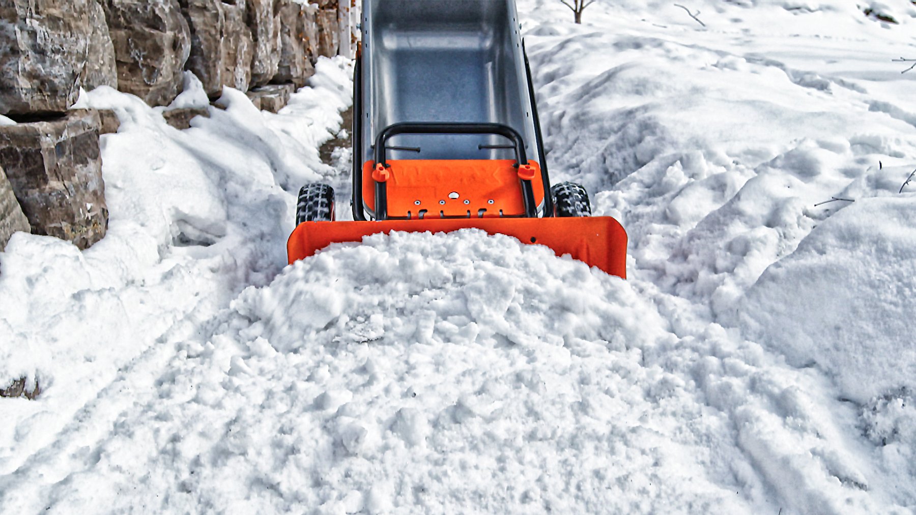 The WORX WA0230 AeroCart Snow Plow attachment connects to the base of the Aerocart allowing you to remove snow from sidewalks and driveways without the back breaking effort of a shovel. The Snow Plow rolls on the Aerocart, pushing snow out of the way as you go. This will save you time and effort as opposed to shoveling and lifting the heavy snow.